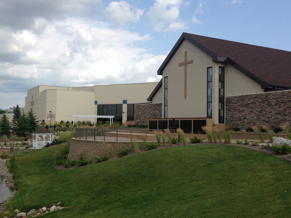 This integrated memorial space in Lakeview, Michigan includes multiple columbarium units installed in different housing structures to compliment the existing design.